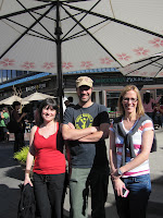 | French Canadiens soaking up February sun in Little Tokyo. |