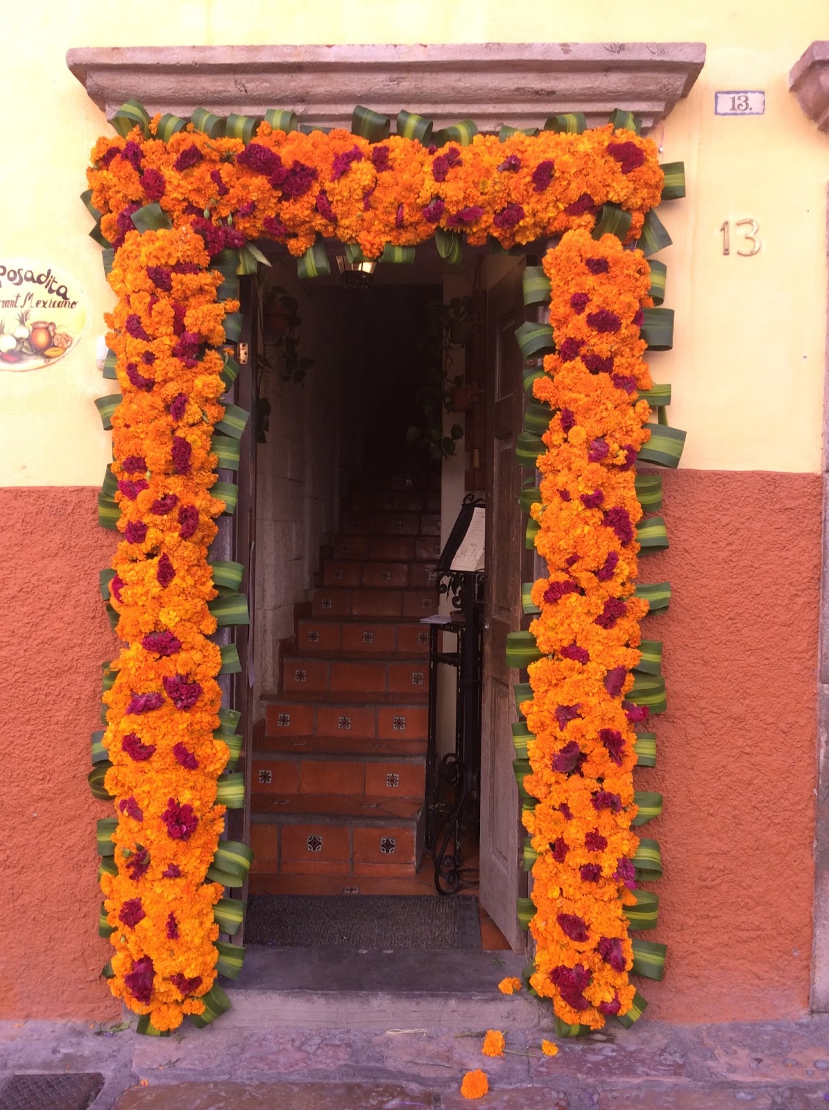 Visiting during Dia de los Muertos - extra colorful, extra fun!: Colonial Mexico would be wonderful to visit anytime, but we chose the excitement of Dia de los Muertos. Everywhere we turned we saw variations of "La Catrina" (the "skeleton woman" caricature made famous by Jose Guadalupe Posada in 1912) and the decorative marigold flower symbolizing Dia de los Muertos. A huge added treat for us was having our faces painted as skeletons and marching in "El Desfile de las Catrinas" through the narrow streets to the plaza. I'll never forget the hundreds of Mexican families taking our pictures and delighting in our costumes. We were impressed by the openness and welcoming nature of the Mexican people to foreigners, and we appreciated their reverence and remembrance for those who have departed this earth.