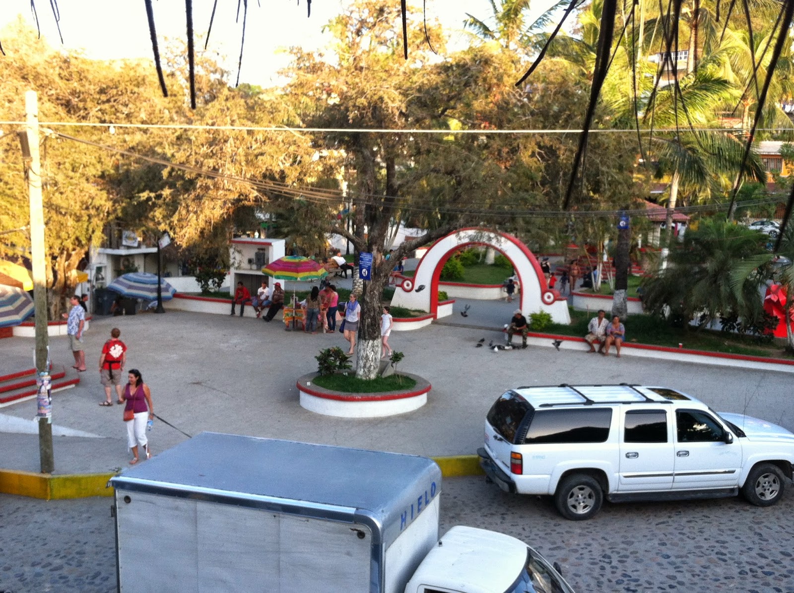 Part of the reason for this rich public life is historical.    Every town, big or small, has a central plaza - a tradition dating back to the Spanish Laws of the Indies in 1542.  These laws required every settlement to have a public plaza with arcaded streets, symmetrical planning, a church and public buildings located around it.  After independence from Spain, the Latin American countries continued to build on the tradition.  The result: every town, big or small has a centrally located town plaza, usually with a kiosk and lots of sittable space.  The plaza is where the town goes, hangs out, listens to music, has a bite.  American colonies  grew with less top-down planning from the mother country resulting in very few town squares and a paltry tradition of cherished public space.