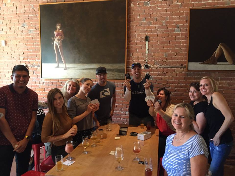 Our next stop was downtown Santa Ana for an unusual brewery called The Good Beer Company. Located on 4th Street in the downtown Santa Ana Historic District, the brewery is located in a beautiful century-old commercial building. Unfortunately, the mixed-culture farmhouse ales were a bit too sour for most of my group, but the atmosphere was delightful. Many played a board game next to the restored brick wall while others took a stroll down entertaining 4th Street - Santa Ana's liveliest thoroughfare, a combination of Hispanic-oriented shops and hipster restaurants.  | This is what a beer tour is all about. Happy people relaxing, enjoying time together and tasting unique brews. The old brick wall provided a great backdrop to our merriment.