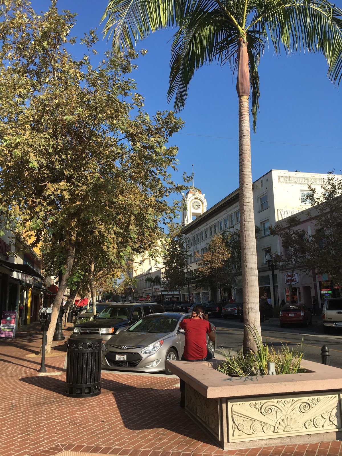 Fourth Street Santa Ana is a jewel with the best concentration of historic commercial architecture in the County (notice the Art Deco planter in the foreground). The Hispanic businesses along the street are combined with hipster markets, galleries and high-end restaurants, and gentrification is at work. Look at the the beautiful wide sidewalk!