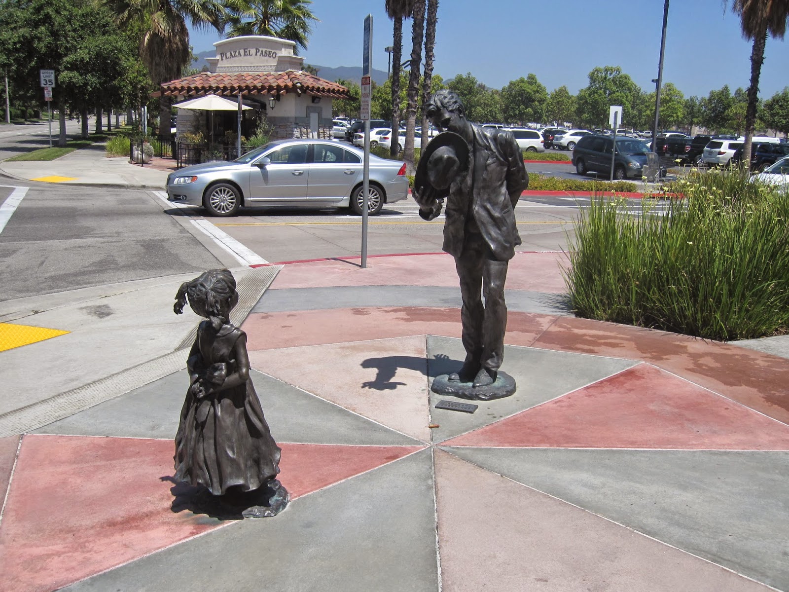 | Fun public art, for sure, but Rancho Santa Margarita's town center largely ignored the street and turned the store fronts towards large parking lots. |