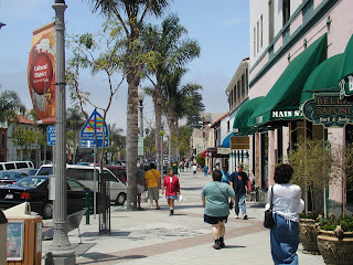 2) VARIETY OF ACTIVITIES AND PEOPLE- True town centers have a mix of retail, civic, residential and recreational uses.  They are not simply nice shopping centers. Ventura's downtown has a great variety of restaurants, cafes, shops, boutiques, thrift shops, parks, museum and plazas.  It's interesting that thrift stores exist alongside fairly trendy restaurants.  Also, there's a noticeable mix of different ages and incomes.  The homeless are present but there seems to be a comfortable coexistence.  Families, twenty-somethings and older folks seem to equally enjoy downtown